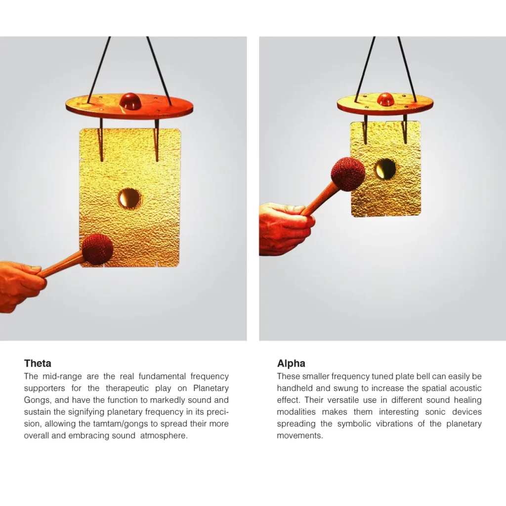 These newly created vibrational tools are based on scientifically calculated periodic means of the planetary circumlations around the sun and their octavisation into the hearing range. Following the ancient tradition of observing and tuning into the movements of the visible planets and their trails, mythologies and energies these sonic “ORBITS” offer an opportunity to playfully explore, contemplate and become conscious of diverse cosmic frequencies and their associated qualities.